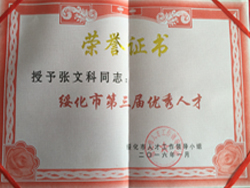 2016年被評為綏化市第三屆優秀人才